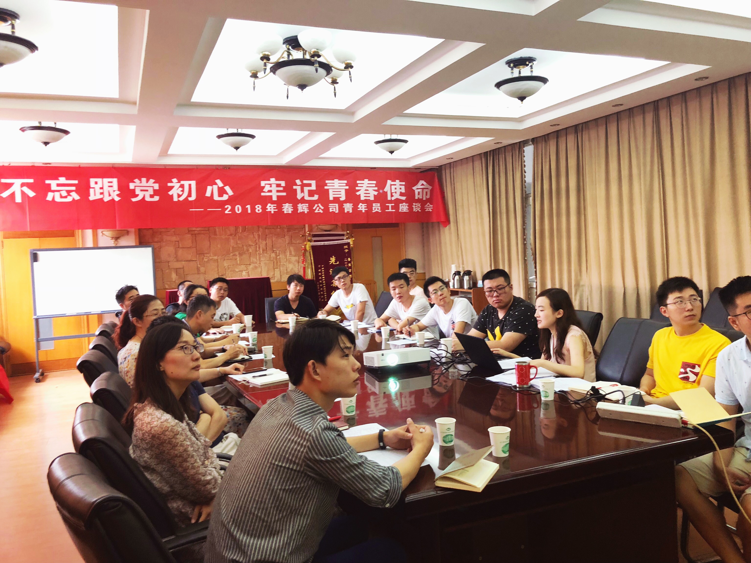 正值迎新季,2018727日,春輝公司團支部開展了不忘跟心,牢記青春使命”主題團日活動。本次活動一天活動取座談交流和現參觀。公司總經理殷志東、黨支部書記張艷、副總經理馬永紅、黨支部支委成員青年員代表等相關人員參加了本次活動