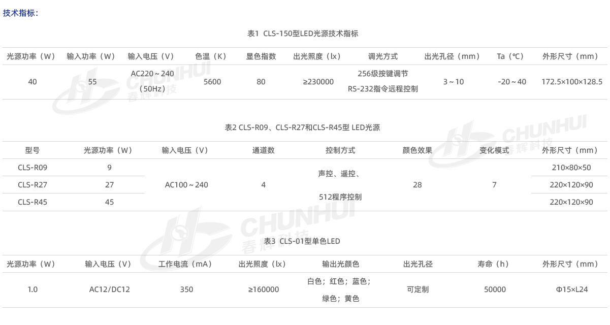 CLS-R09、CLS-R27和CLS-R45型 LED光源無噪音,輸出色豐富,混色均勻;