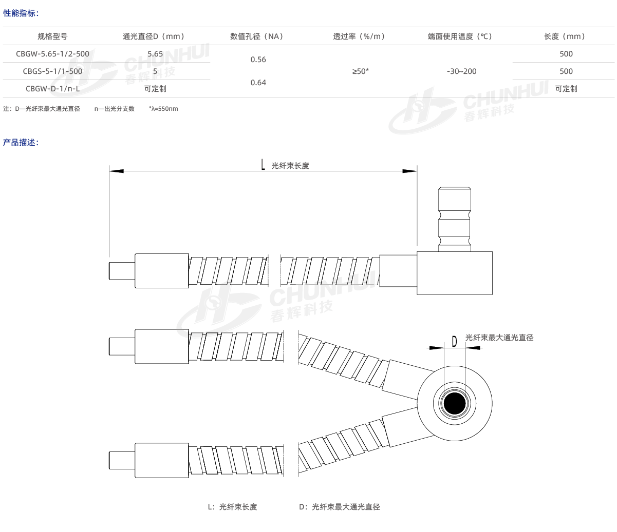 多種芯徑、數(shù)值孔徑可供選擇;