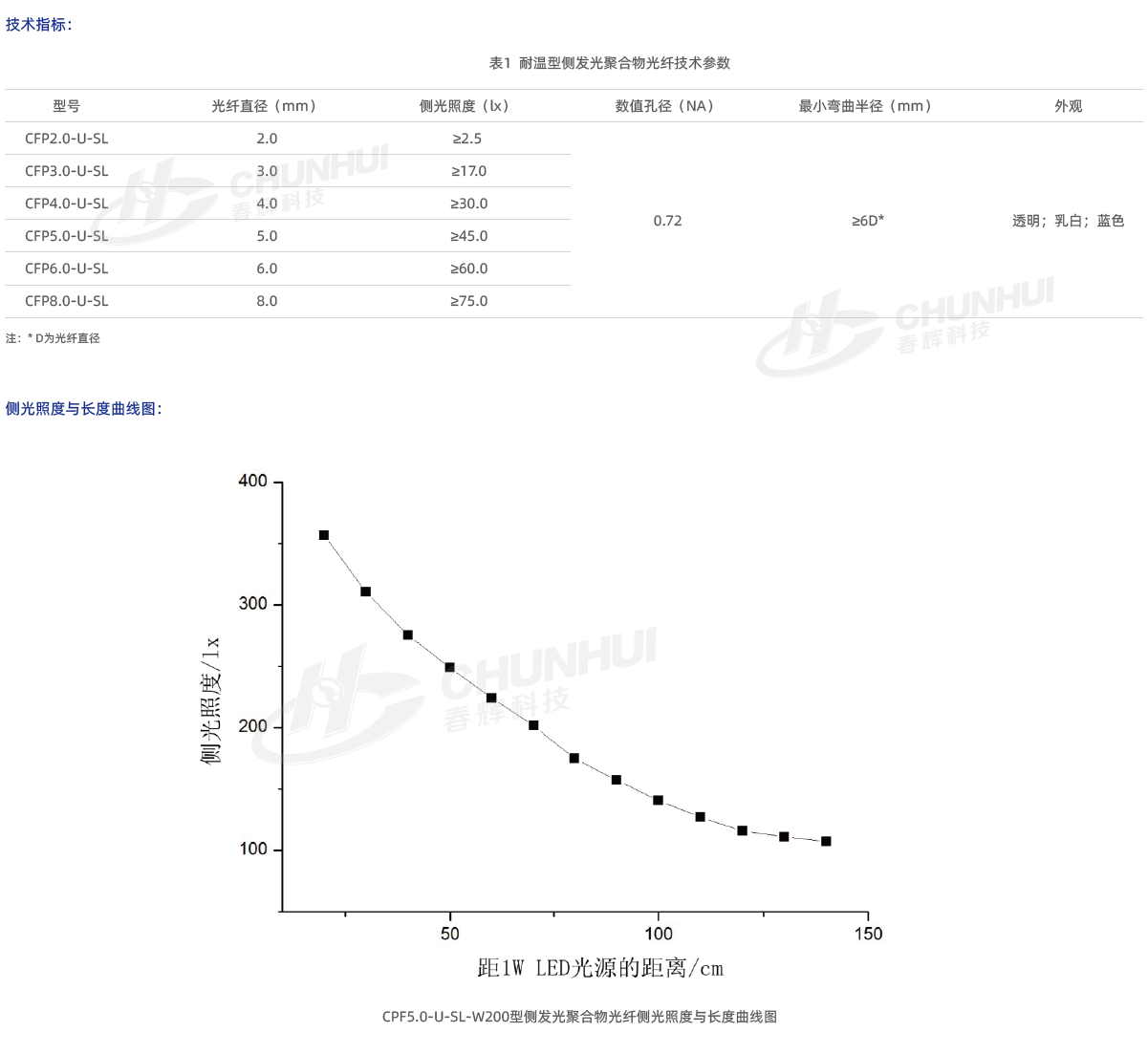 耐溫型側發光聚合物光纖可在-40~105℃溫度下使用;
